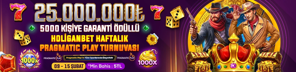2- Holigan Haftalık Pragmatic Play Turnuvası sadece gerçek parayla oynanabilir ve toplam ödül havuzu 25.000.000 ₺‘dir.